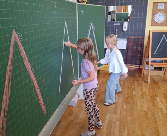 In der 1. Klasse wird schon tüchtig gelesen und geschrieben. Die Kinder lernten mit viel Motivation die „Geheimsprache“ von Lilo und Frosch Fridolin. Mit den Mundbildern werden erste Wörter gelesen und geschrieben.